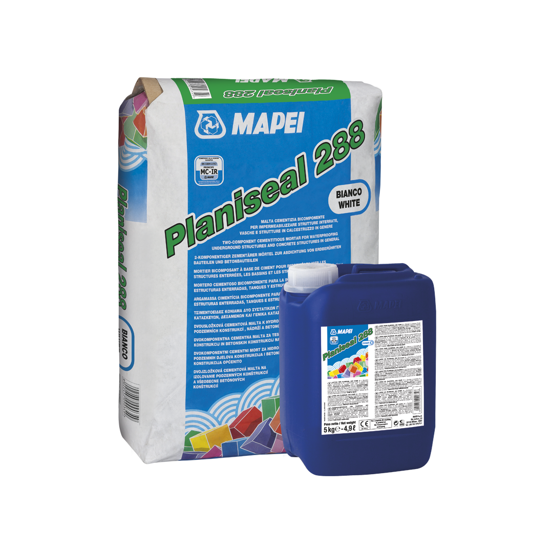 Planiseal 288 është hidroizolim dy komponent me bazë të çementos për hidroizolim të strukturave nëntokësore dhe hidroizolim mbi